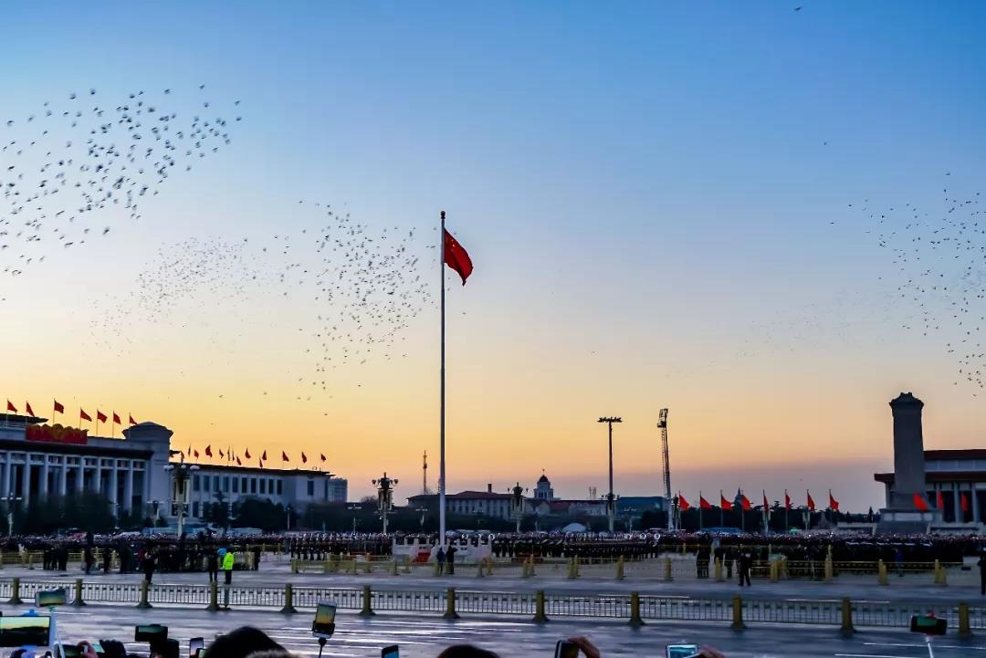一年365天,天安門(mén)廣場上(shàng)每天一定有一面五星紅(hóng)旗和(hé)太陽一同升起。